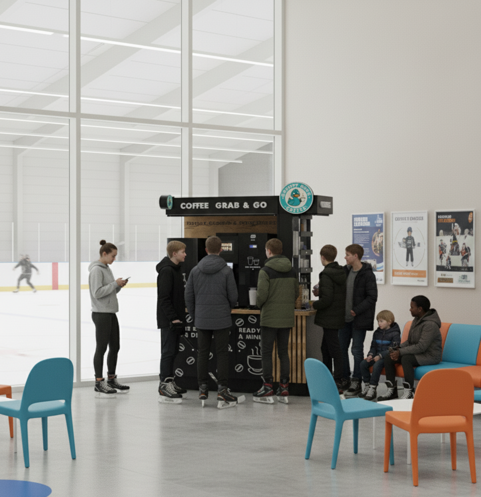 Grumpy Duck Coffee manufactures and operates unique smart coffee stations that provide an innovative, automated coffee experience. We stand out by not only serving hot drinks but also offering automated cup dispensing and ice production for iced beverages.