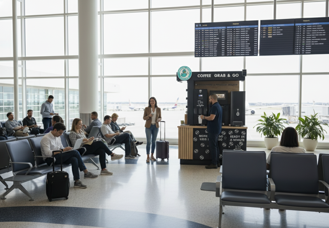 We currently operate smart coffee stations across various locations in the US. Check our website for the nearest station and hours of operation.